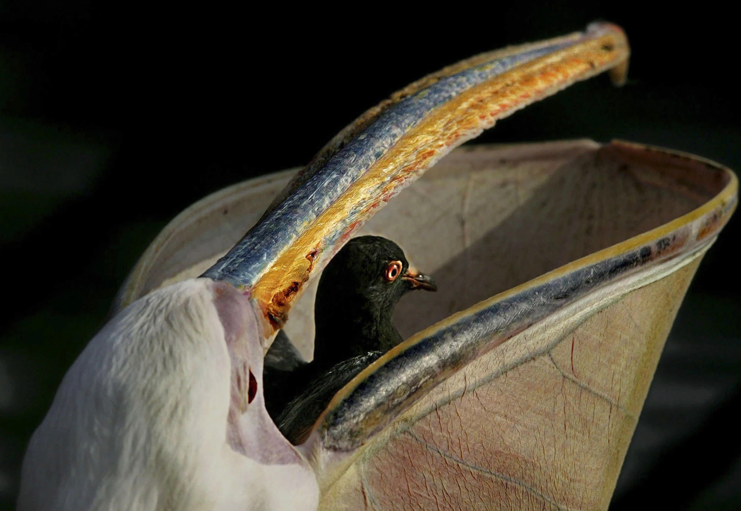 After the dust/pigeon had settled and the event was over I checked to see what i'd got. ONE frame where you could see the pigeon perfectly inside the pelican bill or gular pouch as I later found out.